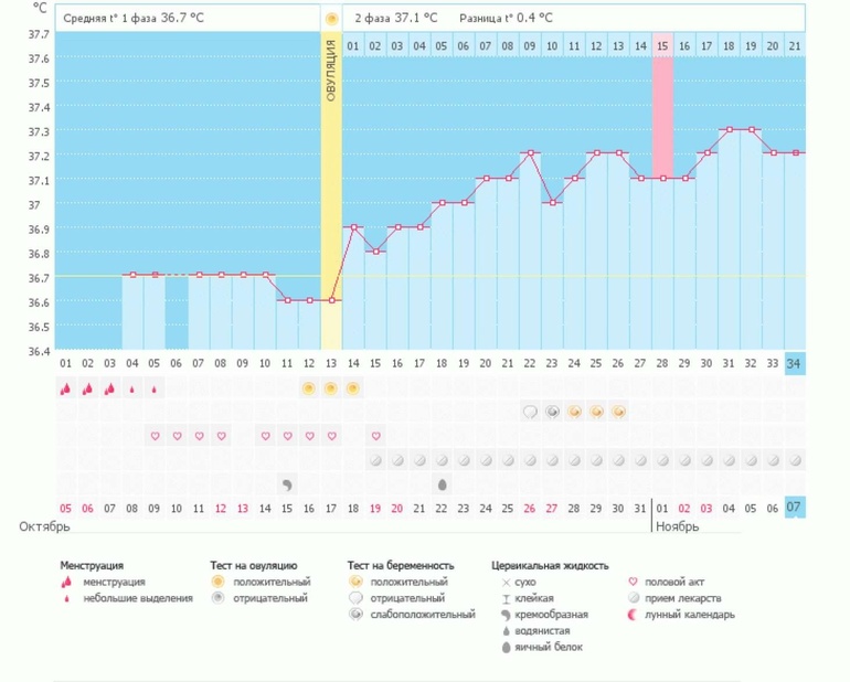 Да вела графики, на 14 обычно овуляция или на 13 , всегда бт во второй фазе держится выше 37, сегодня 37,1, в день КД снижается до 36,8