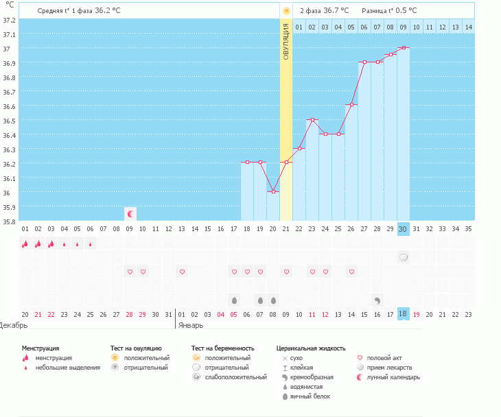 При цикле 34-36 ждите овуляцию с 20-го ДЦ. График с бебиплана О показал правильно. Но если в бэбиблоге укажите низкие температуры с14ДЦ по 17ДЦ то программка вам линию О тоже выставит на 21ДЦ
