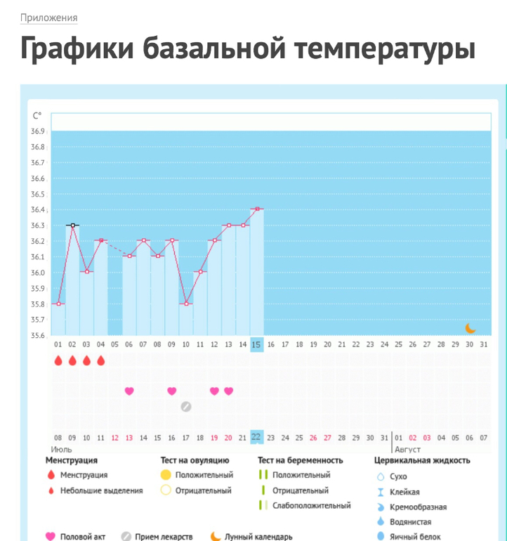 Самая высшая точка на графике — 36,4. Вряд ли была овуляция. У меня тоже низкая температура, но график овуляцию сразу выделил, как только БТ поползла вверх, так что возможно Овуляция ещё впереди!)) У меня вот на 30 ДЦ произошла, когда я её не ждала и уже закончила пить Дюфастон))) А ещё говорят, что он Овулю заглушает...
