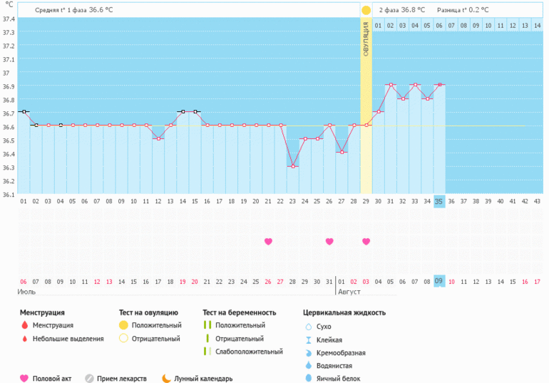 причина показателя БТ на 4-5 ДПО Мой график базальной t°, цикл от 23 июля 2014