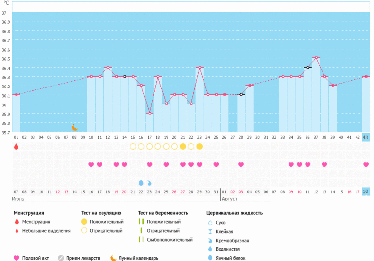 ОЦЕНИТЕ мой график! Всё ли в порядке?Сегодня у меня 44 ДЦ, БТ 36,3 и так все 44 дня БТ 36,0 - 36,4....О даже не пахнет, я читала что бывают цыклы без О, но почему такой длинный, свой цыкл у меня 32 дня !!! У кого-нибудь так было ?!