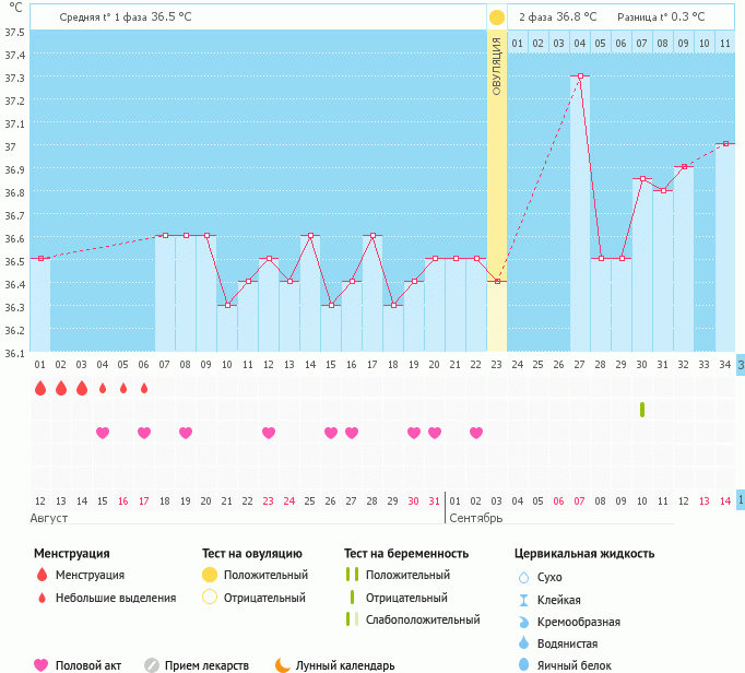 Вопросы и проблемы во ВТОРОЙ фазеДевочки, скажите, пожалуйста, что не так с графиком...больше всего волнует то что БТ перед М не упала.....в день М БТ была 36,7, но обычно она за 3 дня падает....и 36,7 это высоковата для меня, обычно 36,5....воспаления нет точно...была на УЗИ.