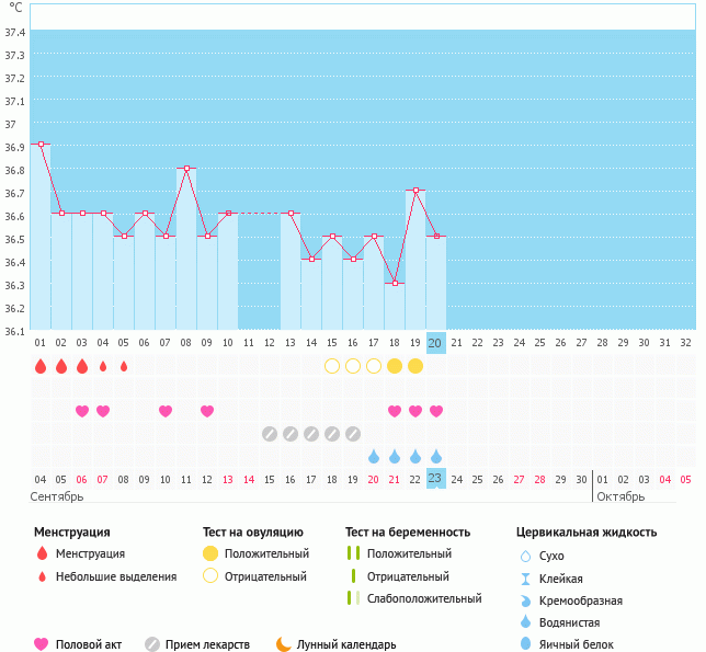 На 18 день цикла темпа упала вниз (я думала, это предовуляционное западание). На следующий день подскочила на 0,4 градуса. В эти дни тесты на О полосатились (вторая почти как контрольная яркая, но не прям тон в тон). А сегодня темпа упала до 36.5 опять