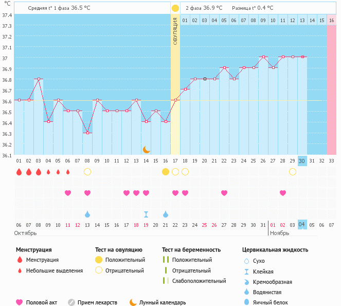 Мой график базальной t°, цикл от 6 октября 2014