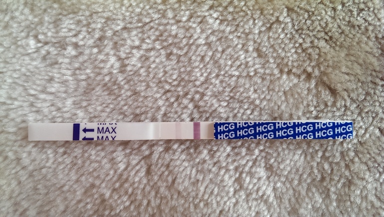 И еще странно об этом писать, но на 7ДПО почувствовала очень четко подкрадывающийся токсикоз, появилось повышенное слюноотделение. Тест показал призрака только на 10 ДПО. На 12 ДПО - бледную, но четкую розовую полоску, фото которой и прикладываю.