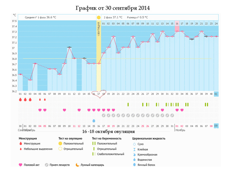 Это шестой график, от предыдущих отличался сразу четким ЯБ. У меня всегда были красивые графики с хорошим перепадом в 0.4 градуса, но к сожалению, ничем не заканчивались. В один из циклов тесты ловили несколько дней биохимическую Б.
