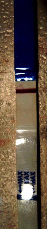 Тест сухой, полосочка появилась после высыхания. Сегодня сделала есть еле видная полосочка. Наверное опять таки пролет, хотя раньше ничего подобного не было.