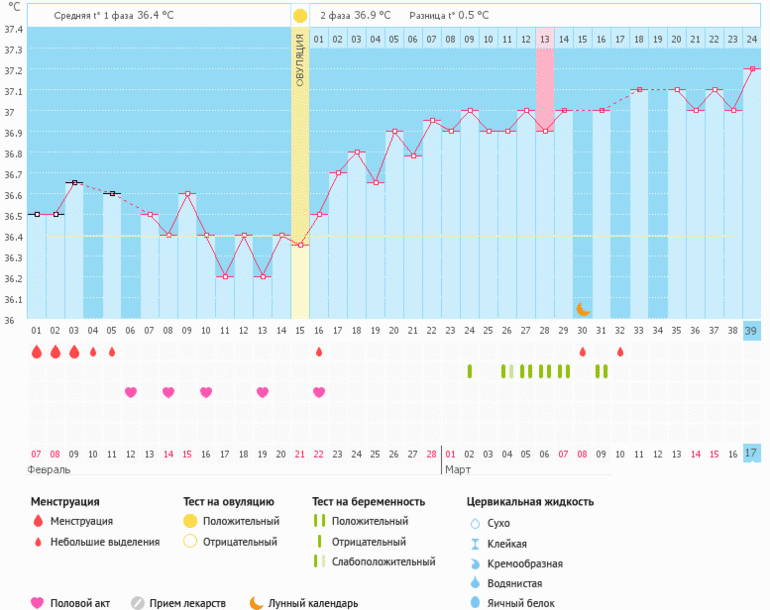 Мой беременный график базальной t°, цикл от 7 февраля 2015