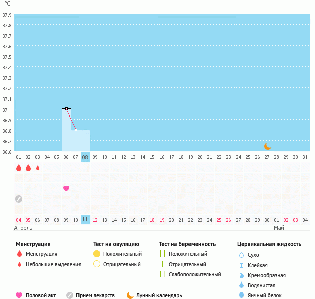 Мой график базальной t°, цикл от 4 апреля 2015
