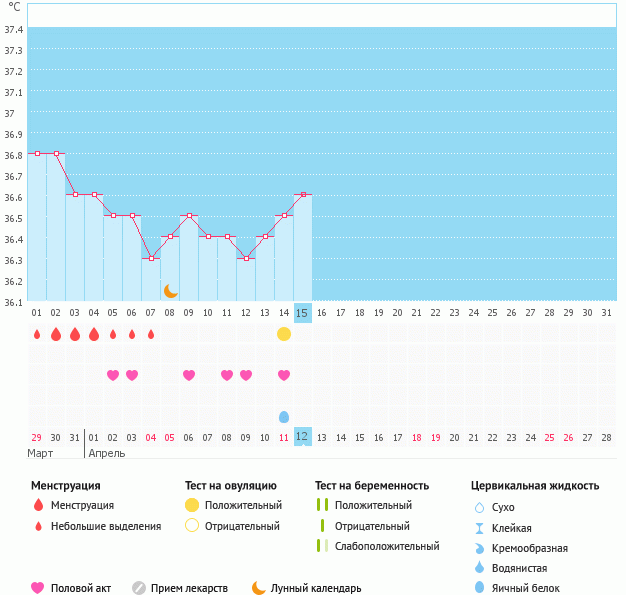 Мой график базальной t°, цикл от 29 марта 2015