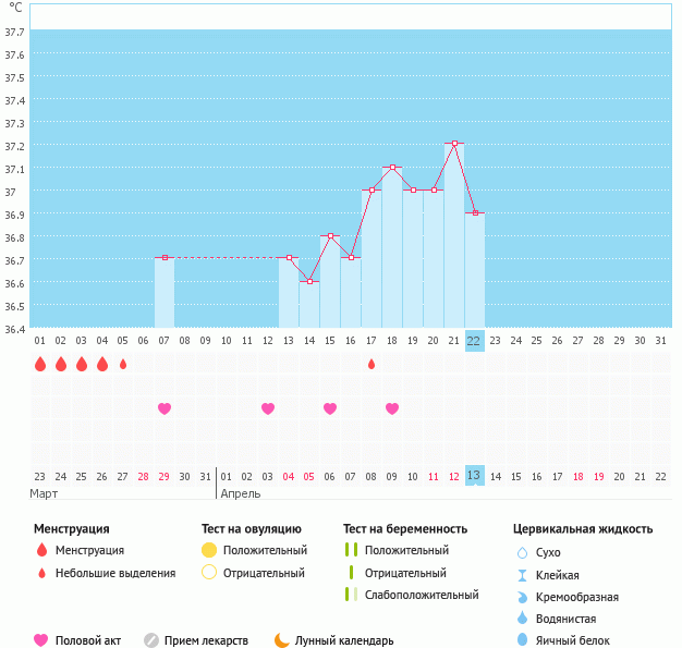 ОЦЕНИТЕ мой график! Всё ли в порядке?Всем привет. Я новенькая. Это мой первый цикл после Искуственного Климакса, который назначили после лапороскопии из-за эндометриоза. Было 3 укола Бусерилина-Депо, после чего 1 упаковка Жанина. Т.е месячные, могут быть и не месячными, а менструалоподобными выделениями на графике. Очень надеюсь на Ребаунд-Эффект. Атовматически на графике не выставилась овуляция, но по моим ощущениям она случилась 6-7 апреля (13,14 ДЦ). Что скажете? Переживаю, что не попали с ПА. Жру, как слон...бегаю по маленькому часто, грудь болит. Может это ПМС((( Мне 33 года...Очень хотим второго ребеночка.