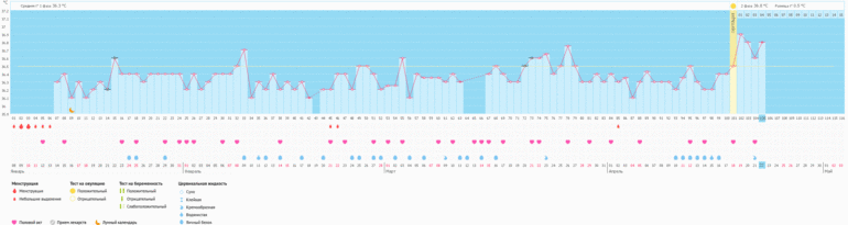 ОЦЕНИТЕ мой график! Всё ли в порядке?Половину пришлось обрезать, не видно. Средняя БТ в первой фразе 36.3, во второй 36.8, разница 0.5. Приятельница - гинеколог настаивает на "Линдинет 20" (курсом хотя бы 6 месяцев) и не заниматься бессмысленным (имея ввиду графики БТ)... В любом случае, надо дождаться менструации... Соски болят, сама "горю", всё тело горячее.