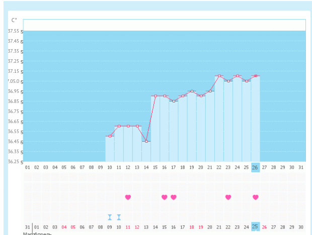 Мерить надо хотяб с 5 дц, а то программа путается и ничего не выставляет) в идеале конечно надо с первого дня цикла проводить измерения. Удачи!