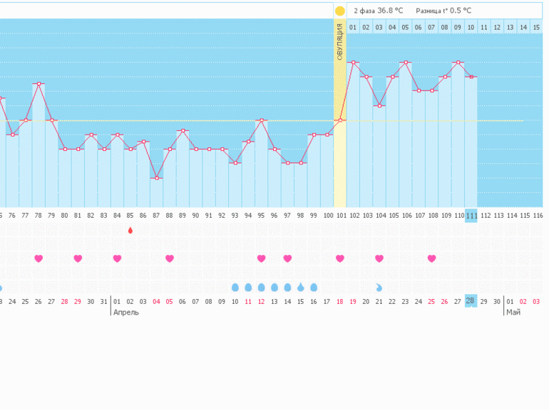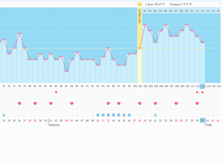 Вот каким был мой 113 - дневный цикл, с овуляцией на 101 день... ((