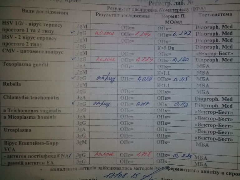 Я вас поздравляю!! Тюфу тьфу на вас!))Сдала ещё дополнительный анализ на авидность,оказалось,что у меня иммунитет к этим вирусам 100℅. Уколы отменили.Хотят прогестерон ещё проверить,и мужу ТОРЧ сдать и бак.посев.Т.е.,у меня это случилось не из-за герпеса.Как мне сказала врач сегодня,это мог быть горм.сбой,слабая яйцеклетка, или у мужа что-нибудь... Расследование продолжается!) Вам здоровья,пусть беременность лёгкой будет,и конечно же малыша здорового!!!)))))