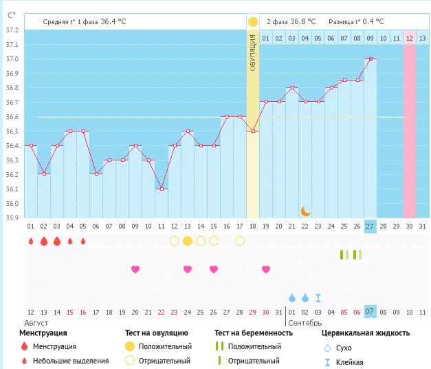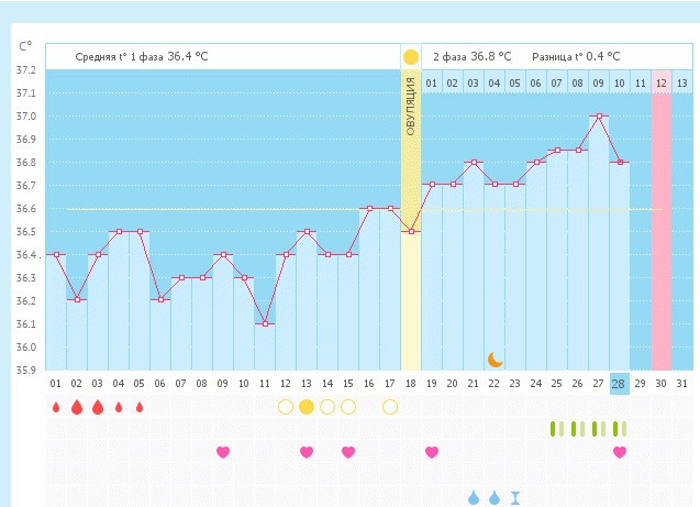 Подскажите что думаете по моему графику. Прога поставила О на 18 д.ц., по тестам на О - положительный был 13 д.ц. Тесты ярчают, до задержки еще 2 дня. Сдала анализ сегодня: прогестерон 123,30 нмоль/л, хгч 170,8 мМЕ/мл.