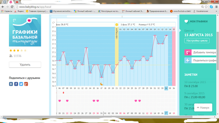 Мой график базальной t°, цикл от 20 августа 2015 Мой график базальной t°, цикл от 29 августа 2015