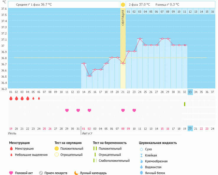 Сходила к гинекологу. Она меня направила в Центр планирования беременности. В направлении написала диагноз: дисфункция яичников. Но ответила, что это не точный диагноз, так как надо делать УЗИ и сдавать др. анализы на гормоны и т.д. Ничего не прописала пить из лекарств. И подтвердила, что графики хорошие и О на 21 д.ц. приходиться. Решила ещё тест купить, на определение О. Для точности. Диагноз конечно напугал. Почитав на сайтах причины такого обнаружила как-всегда нервно-психическое расстройство. Возможно причина в этом, а может и нет.