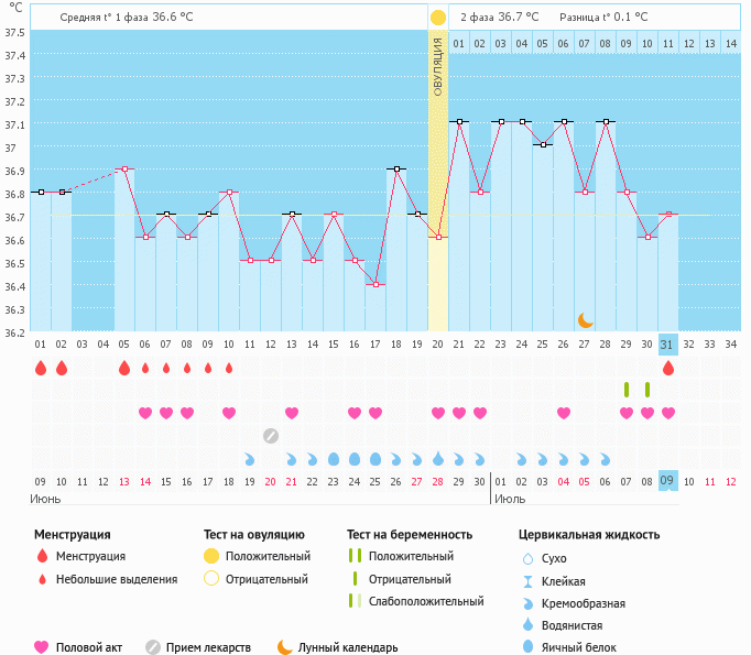 Так вот самое интересное, что нет никаких обьективных внешних факторов, чтоб такие скачки были, у меня в первой фазе всегда очень низкая температура, около 36, поэтому поднятие до 36.7 у меня первый раз за три месяца, вот и думаю, что это такое может быть.