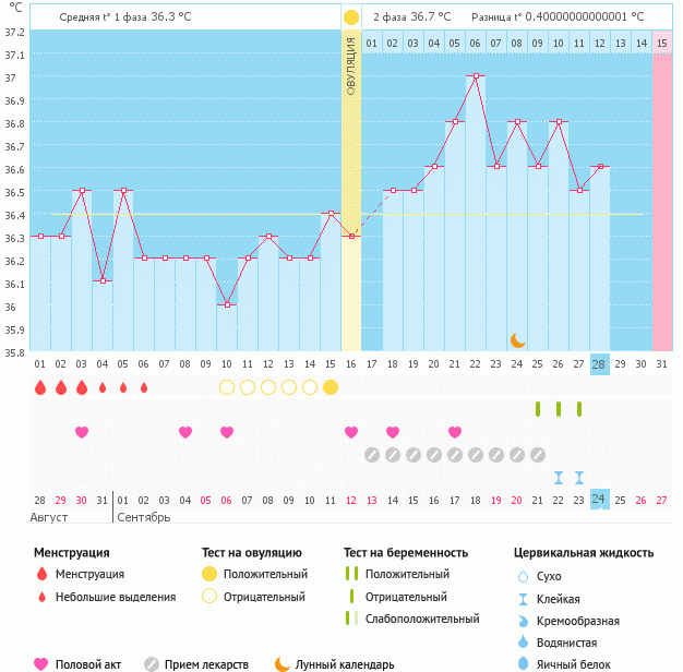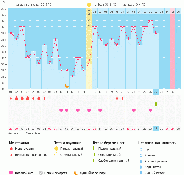 привет ббэшэчки)) Мой график базальной t°, цикл от 6 сентября 2015