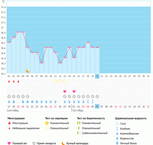 Мой график базальной t°, цикл от 17 сентября 2015