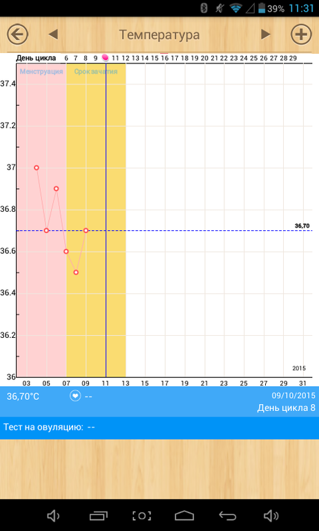 Это приложение меня никогда не подводило я с ним с 2012 года, всегда верно выставлял. Но в прошлом цикле была задержка 17 дней.... и теперь календарь сошёл с ума ставит овуляцию так рано, обычно на 14-15 дц.... ещё эти тесты непонятные то ярчают, то бледнеют... надо в этом разобраться как то....