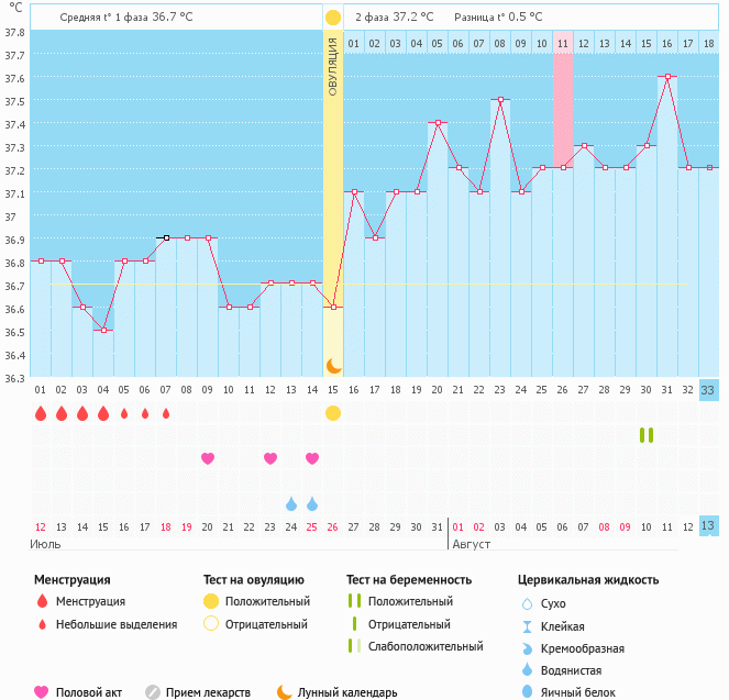 Вторая фаза всегда была 10 дней. Овуляция обычно бывала на 18-19 дц, а тут пришла на 15 дц (это совпало и с моими ощущениями: тянуло яичник и вообще низ живота).