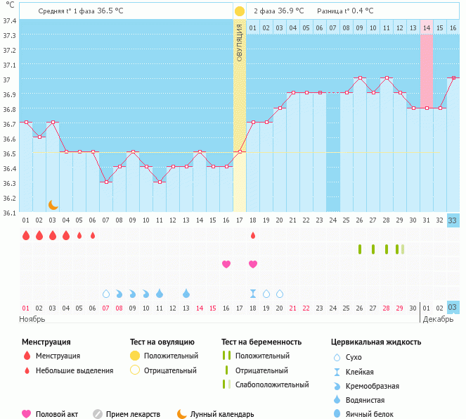 Мой график базальной t°, цикл от 9 ноября 2015, для статистики
