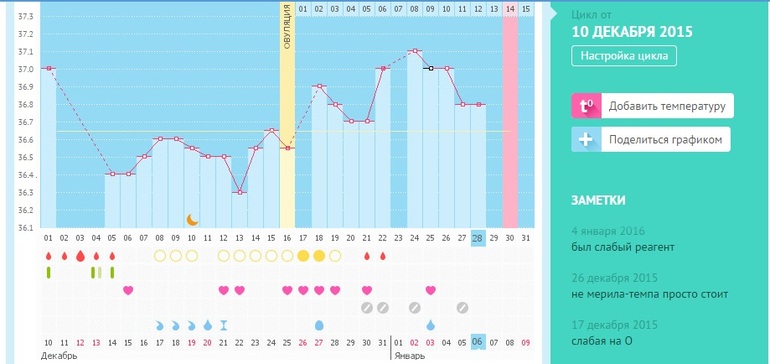 Аида в Графики базальной температуры 10 лет Мой график базальной t°, цикл от 11 декабря 2015 Беременность, признаки по БТ, есть ли шанс? Посмотрите еще 20 записей на эту тему Отменить Ответить Екатерина У меня также-свалилась темпа до 36,8.... сидимс...ждемс что дальше 06.01.2016 Ответить Аида Удачи вам чтоб не было монстров 06.01.2016 Ответить ольга дай бог, чтоб получилось 06.01.2016 Ответить Мой график базальной t°, цикл от 12 декабря 2015 Мой график базальной t°, цикл от 14 декабря 2015 Чаты Беременных Выберите чат: Январята-2026 Февралята-2026 Мартята-2026 Апрелята-2026 Майчата-2026 Июнята-2026 Июлята-2026 Августята-2026