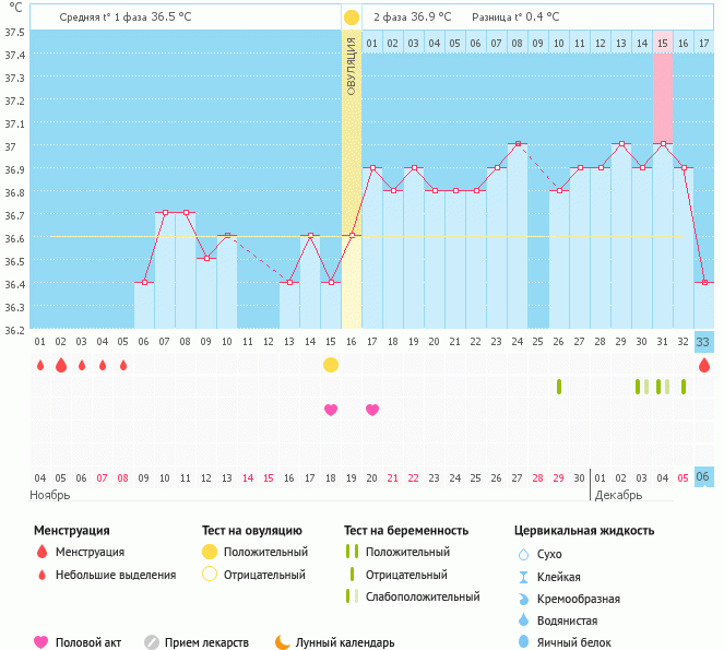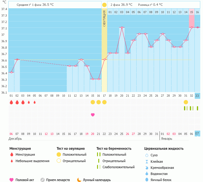 Мой график базальной t°, цикл от 6 декабря 2015