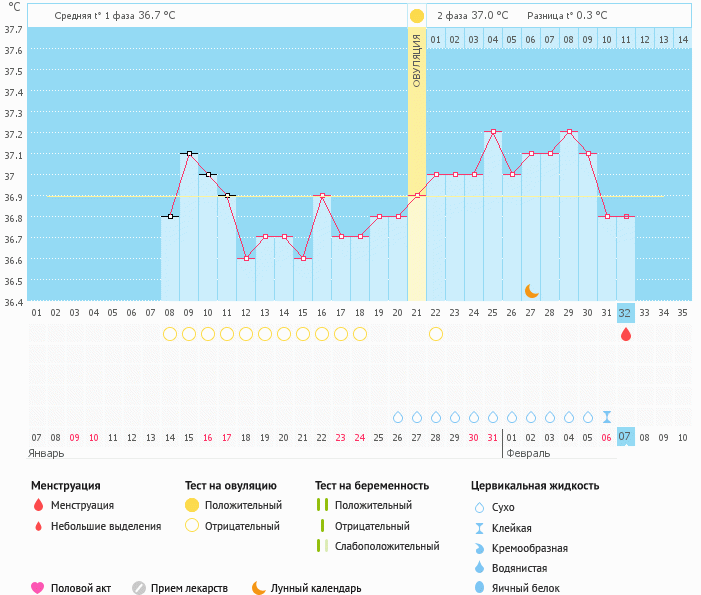 У вас цикл всегда такой длинный 31-32дня?если да, то О нужно ловить с 18 дня и так далее. Мое мнение.