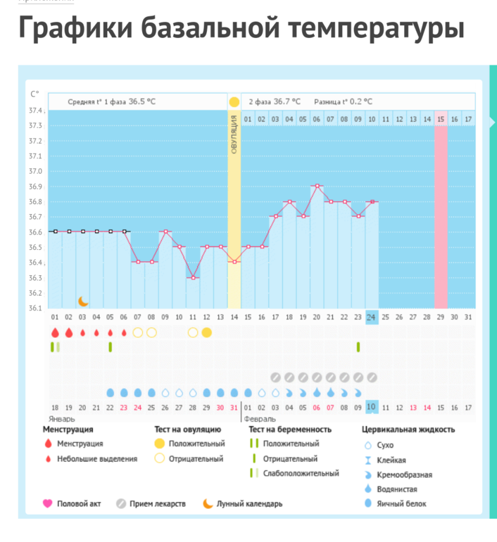 Мой график базальной t°, цикл от 18 января 2016