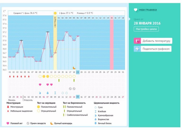 Мой график базальной t°, цикл от 28 января 2016