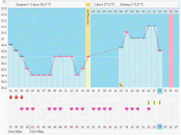 и падение температуры второй фазы тоже за 1 день до предполагаемым месячных!)) Все как у Вас! Удивительно !!