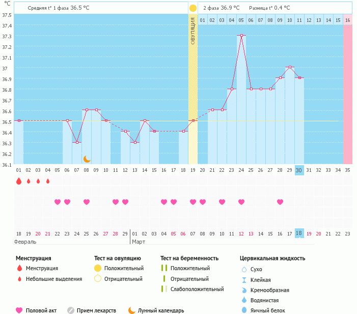 Вот такой вот красивый график и одно НО...Киста правого яичник 4,7*2,5. Ну вот как теперь верить графикам??????? Плюс еще и палка в догонку - тонкий эндометрий. Во вторник потопаю ко врачу.