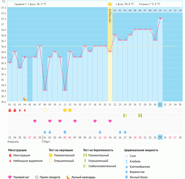 Новая надежда,Мой беременный график базальной t°, цикл от 23 февраля 2016