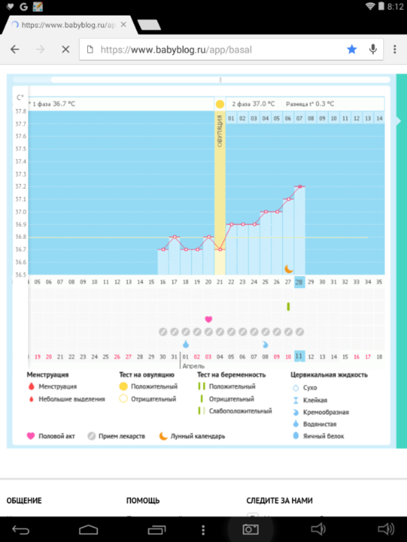 Alina в Графики базальной температуры 10 лет Мой график базальной t°, цикл от 15 марта 2016 ОЦЕНИТЕ мой график! Всё ли в порядке? Что скажите,может ли мой график быть беременным? Посмотрите еще 20 записей на эту тему Отменить Ответить //Львенок //(Буду мамой в 2018г!!!) Может конечно!!! Удачи!!! 11.04.2016 Ответить Alina Спасибо 11.04.2016 Ответить Мой график базальной t°, цикл от 25 марта 2016 Мой график базальной t°, цикл от 22 марта 2016 Чаты Беременных Выберите чат: Январята-2026 Февралята-2026 Мартята-2026 Апрелята-2026 Майчата-2026 Июнята-2026 Июлята-2026 Августята-2026