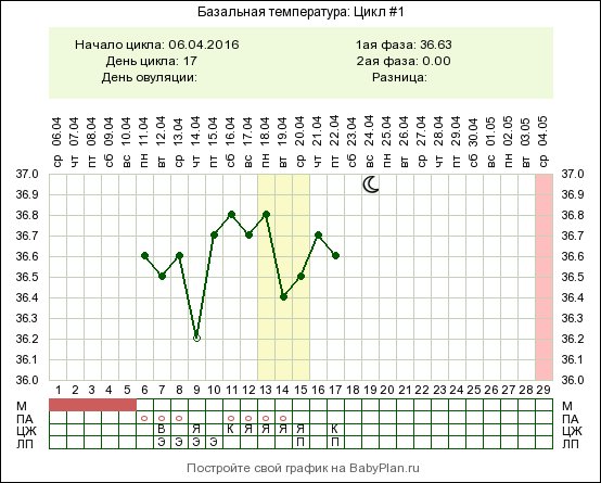 Мой график базальной т. Цикл от 6 апреля 2016 г.