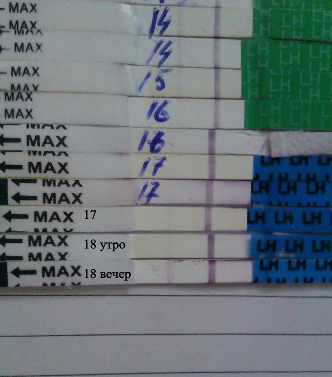 я делала тесты с 8 дц!каждый Божий день и не по разу,так и не увидела жирных полосок в овуляцию и перед ней на тесте,просто увидела динамику,и точно знала что О будет на 18дц т.е. 28.04,максимум ,что тест смог мне выдать это вот(конечно может быть и фирма тестов последних подкачала,но не знаю..,у девочек и Клевер рисовал жирненькие полосочки,а мой организм вот такой вот,так что полагалась на подсчет дней и ощущения и выделения)