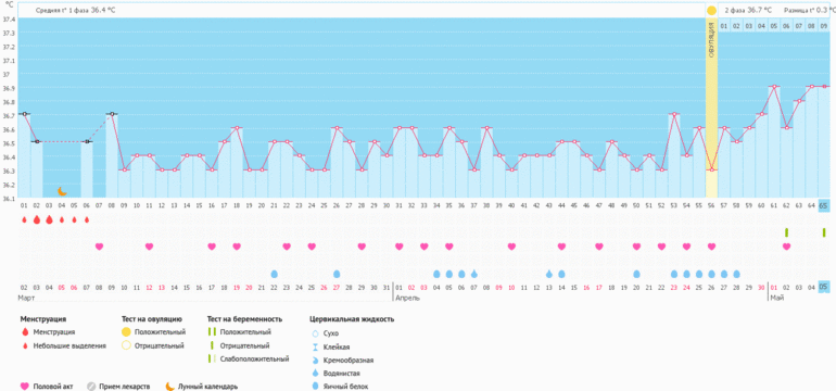 ОЦЕНИТЕ мой график! Всё ли в порядке?Я в замешательстве... Помогите определиться. Сегодня померила БТ, в 5 утра, как положено, БТ - 36.6. Ужаснулась, впихнула градусник снова и уснула на полчаса, примерно. Высовываю, а на градуснике уже 36.9. При всём этом не вставала с постели, не вертелась. Есть одно "но", спали мы с открытым окном, лежала не полностью укрывшись одеялом, от того, что всё тело было горячим и мне было жарко. Во второе измерение укрылась и получила 36.9. Так вот, что поставить в графике не знаю. Конечно, 36.9 нравится больше... ) Надо сказать, что горячая я до сих пор, тело печёт.