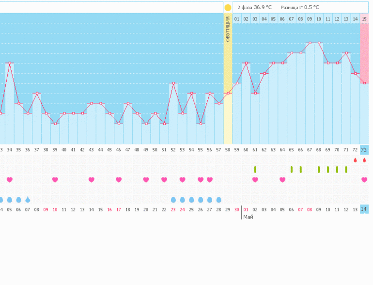 ОЦЕНИТЕ мой график! Всё ли в порядке?Слабонервные, как шли мимо, так и проходите дальше...)) Дорогие девочки, вот и закончился мой график, началась менструация, вернее, уже как 3 день "радует" мой истерзанный догадками мозг... Теперь мы видим, что овуляция произошла на 58 д.м.ц (выставила сама), сразу же, как закончился ЯБ, у меня обычно так и бывало, просто этот график подкинул много сомнений и терзаний, заставляя меня метаться от варианта к варианту. )) В общем, даже и не знаю, что чувствую при этом... Наверно, 50/50... Намечен отпуск, а там и новый круг анализов...