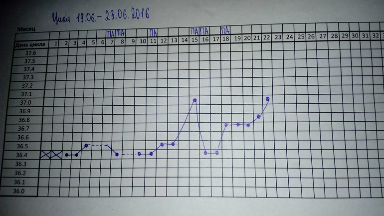 Посмотрите, пжт, есть ли шанс, что есть беременность? Вот на 22 д.ц.БТ поднялась до 37, а на 23 д.ц. и на 24 д.ц.держится 36,8... Подскажите, что думаете по этому поводу?