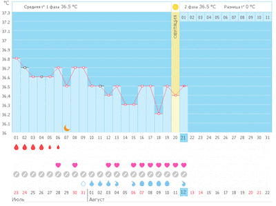 воспроизвела ваш цикл, программа выставила О на 19дц. По идее у вас сегодня день Х и 12дпо