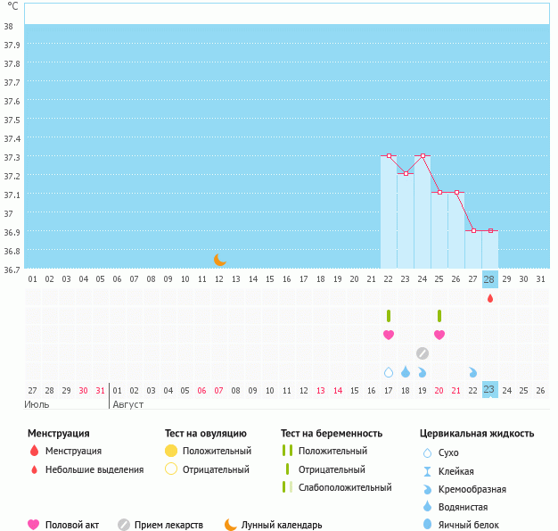 Shah в Графики базальной температуры 9 лет Мой график базальной t°, цикл от 4 августа 2016 Беременность, признаки по БТ, есть ли шанс? Посмотрите еще 20 записей на эту тему Отменить Ответить Foxic Вот мой. Сегодня начались выделения =((( 23.08.2016 Ответить Татьяна Мне гинеколог говорила, что если БТ после овуляции держится выше 37,0, значит беременность наступила!) Удачи Вам!) 23.08.2016 Ответить Del Трудно сказать. А когда па был? 23.08.2016 Ответить Мой график базальной t°, цикл от 4 августа 2016 Мой график базальной t°, цикл от 24 июля 2016 Чаты Беременных Выберите чат: Январята-2026 Февралята-2026 Мартята-2026 Апрелята-2026 Майчата-2026 Июнята-2026 Июлята-2026 Августята-2026