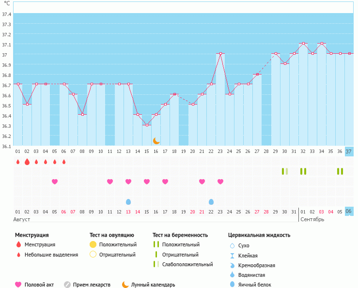 Вот мой неожиданно беременный график, тут ни овуляции не видно толком, ни ИЗ) так что девчонки не переживайте) всем желаю скорейших //