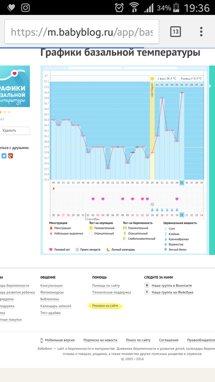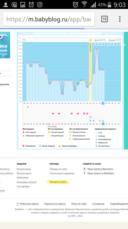 Мой график базальной t°, цикл от 28 августа 2016 Мой график базальной t°, цикл от 1 сентября 2016