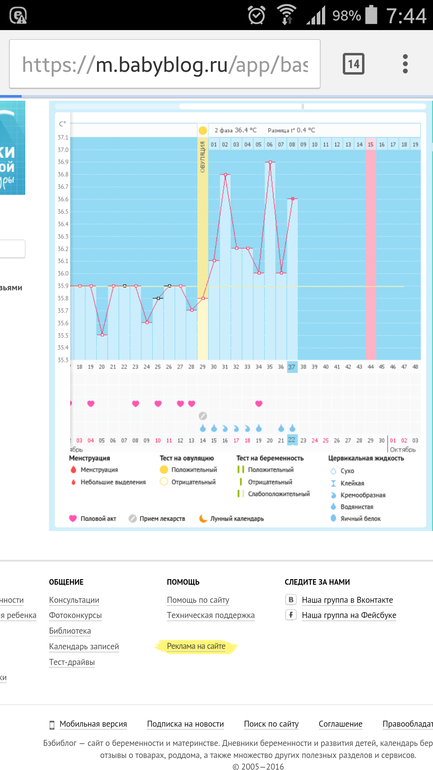 Сегодня опять... американские горки. На узи попасть не получилось. Завтра 100% поеду. Меряю в одно и тоже время по будильнику. Ректально. Тт. У меня с самого начала этого цикла что то случилось со мной.. Тт тела в жизни не была ниже 36.5 а тут 35.5 и 35.4 была. А базальная видишь? Низкая какая? Тоже такой не было низкой... А еще!! Насколько я знаю что после пробуждения температура поднимается. У меня нет. Было раза три где то(в типа первой фазе=)) я ночью просыпалась на 2 часа раньше. Мерила допустим 35.9 потом ложилась опять и мерила по будильнику а она ниже.. 35.5 например.. короче изначально что то с организмом странное...