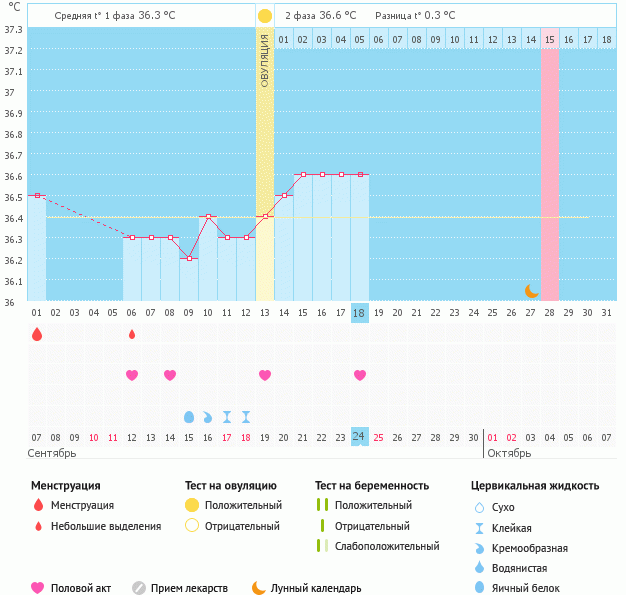Мой график базальной t°, цикл от 7 сентября 2016