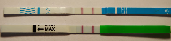 У вас какие то полосочки не дотягивают до контрольной, может тесты такие? У меня вот такой становится когда овуляция,верхний тест пик,нижний на след.день