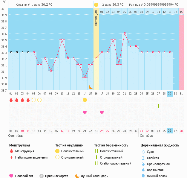задержки ещё нет.... В графике есть нарушенные точки БТ, которые мешают программе точно выставить О. Я предполагаю её на 16 дц... и сейчас только 13 дпо, ещё пару дней до задержки...